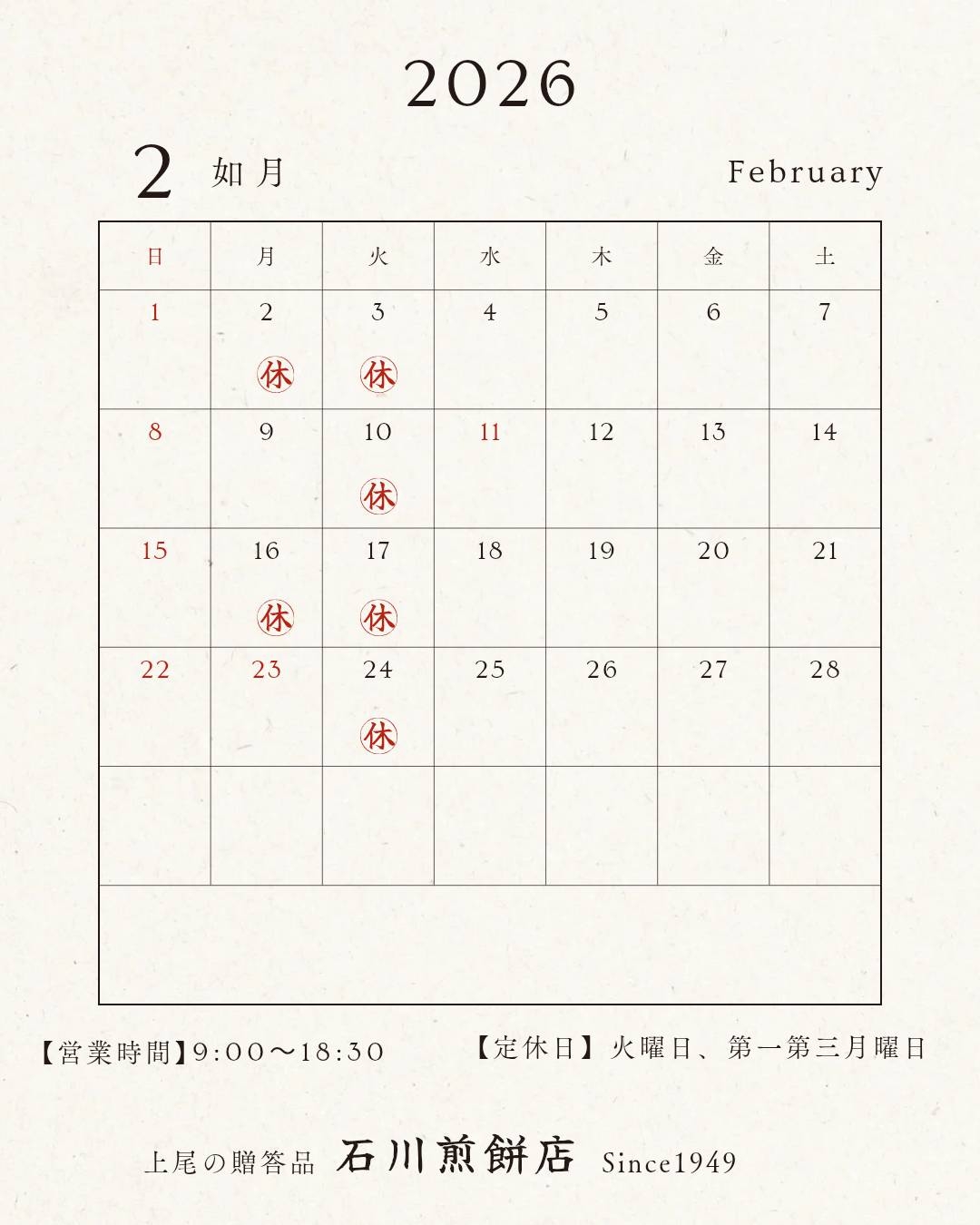 石川煎餅店は18日㈰に出店いたします
